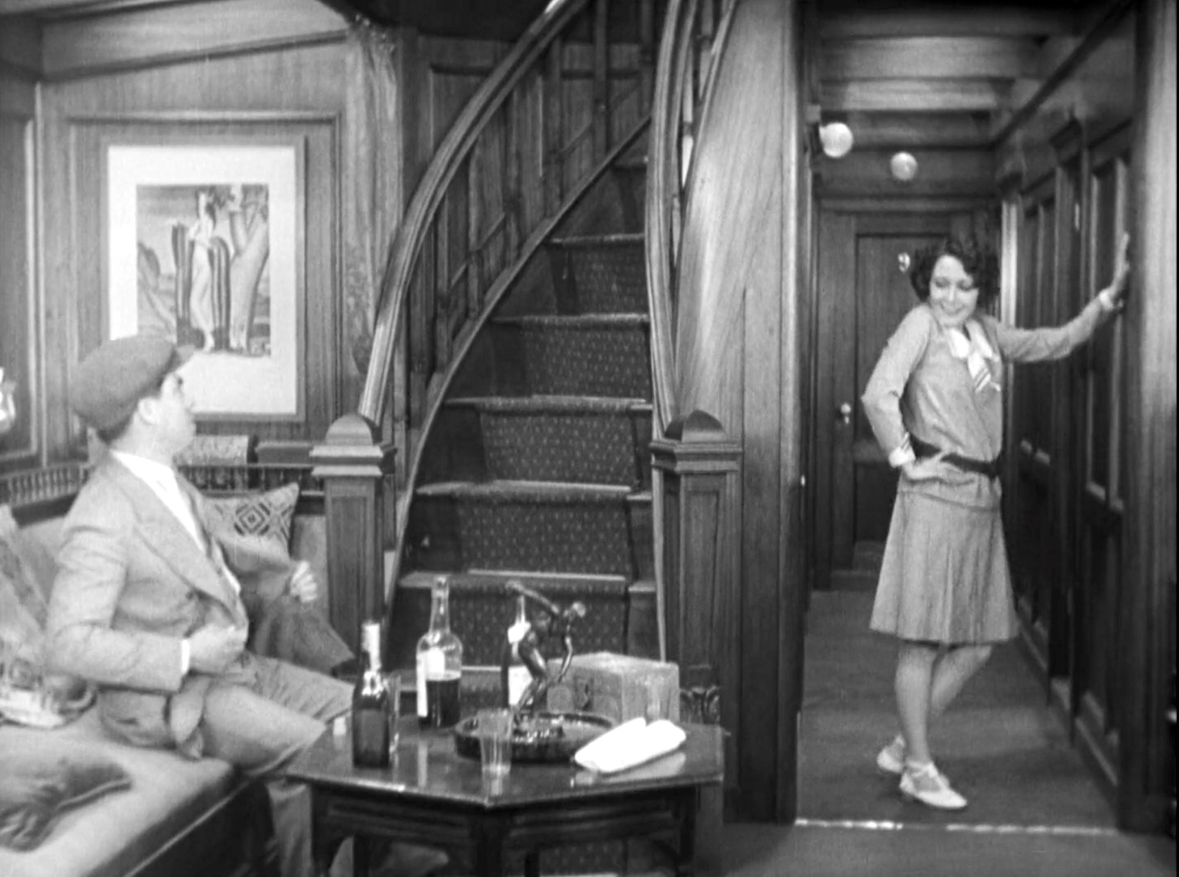 For a little while, it’s similar to The Navigator, with Elmer and Trilby being the only people on the yacht. There’s quite a few funny moments — Elmer promoting himself to captain, trying to roll up the sails, rescuing Trilby when she falls into the sails, etc. But eventually, another ship comes by — but its the rumrunner and his crew!