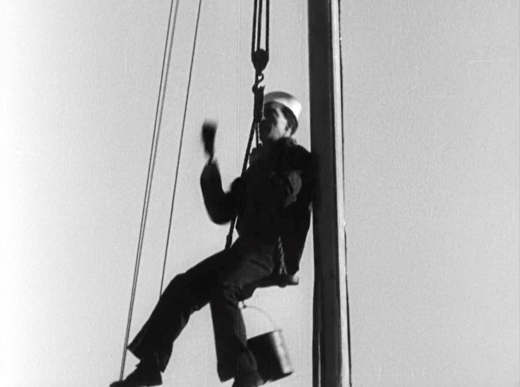 He’s taken captive — so he can’t testify to the police what he’s seen! But soon, he escapes overboard, and he’s rescued by a luxury yacht. Unfortunately, they can’t return him to shore, but he’s allowed to work for his keep. One day while varnishing the mast, he sees …. his wife! And she’s talking to his rival!