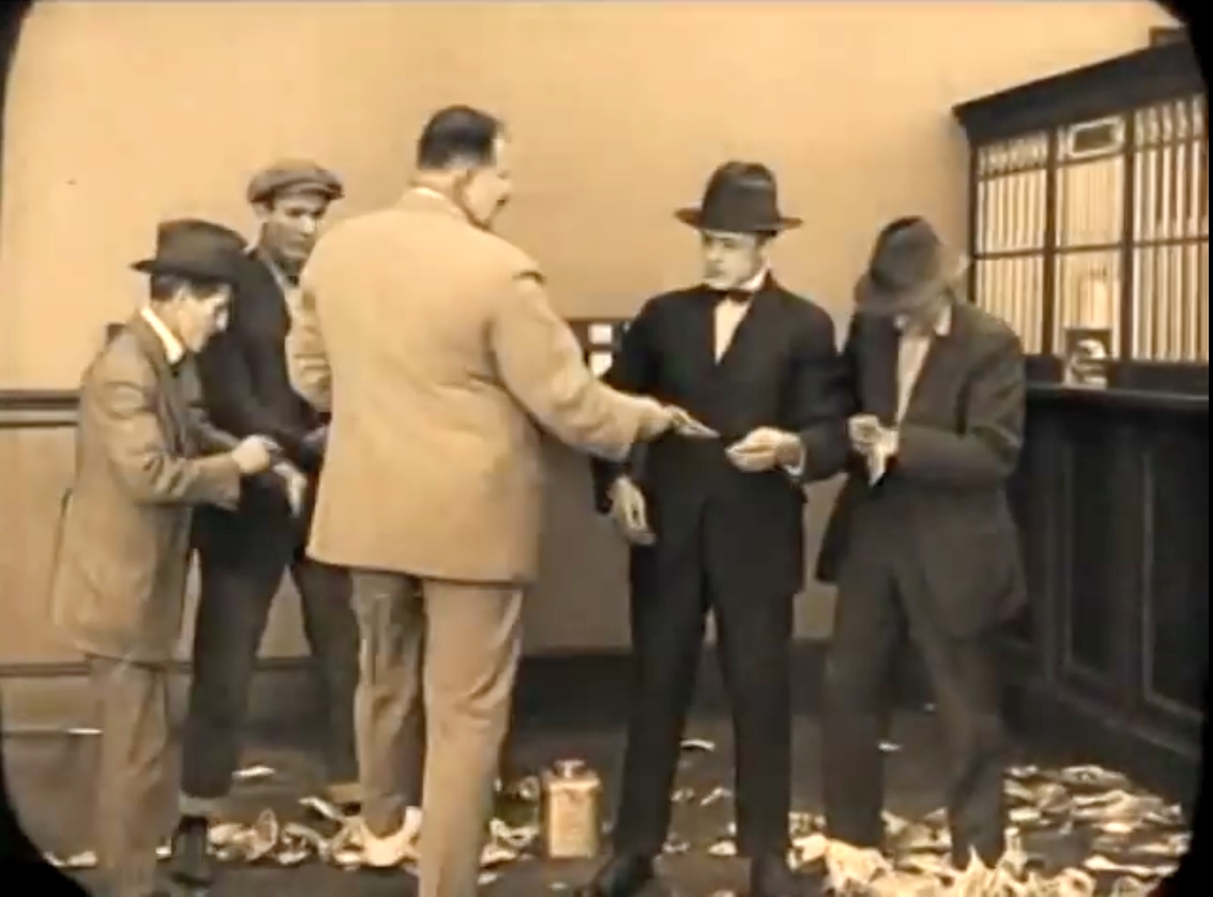 In The Haunted House, Buster Keaton is working as a bank teller. Unknown to him, the cashier is in league with a gang of counterfeiters, and they have a safe house. It’s a ‘haunted’ house with lots of gimmicks to use to stymie the police, if they’re ever on the run. Meanwhile, a lovely young lady comes into the bank, wanting to cash a check. But the time vault won’t open until 9:00! But, after some feminine persuasion, Buster simply turns the clock ahead one hour and takes out the money!