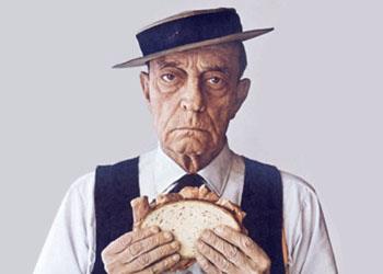 Portrait of Buster Keaton, the great stone face, in his trademark hat