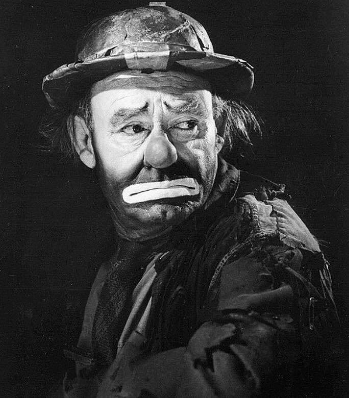Photo of Emmett Kelly Sr. in his early tramp makeup