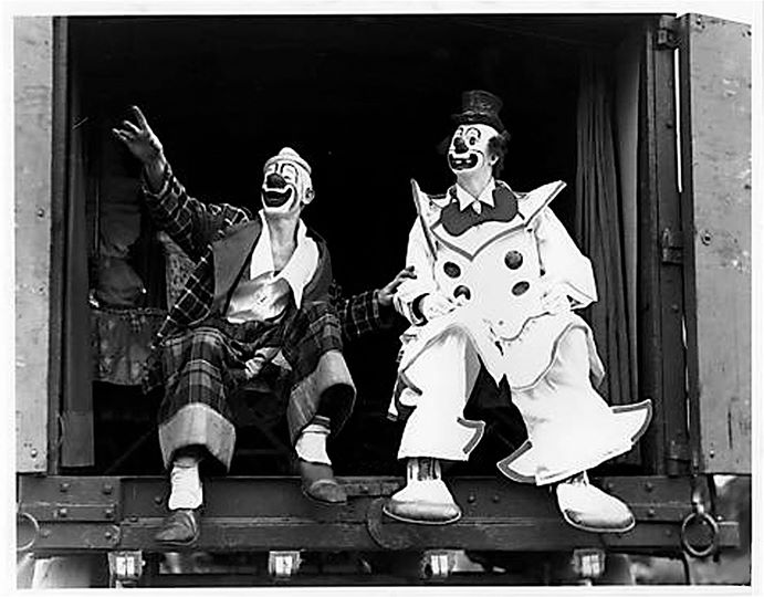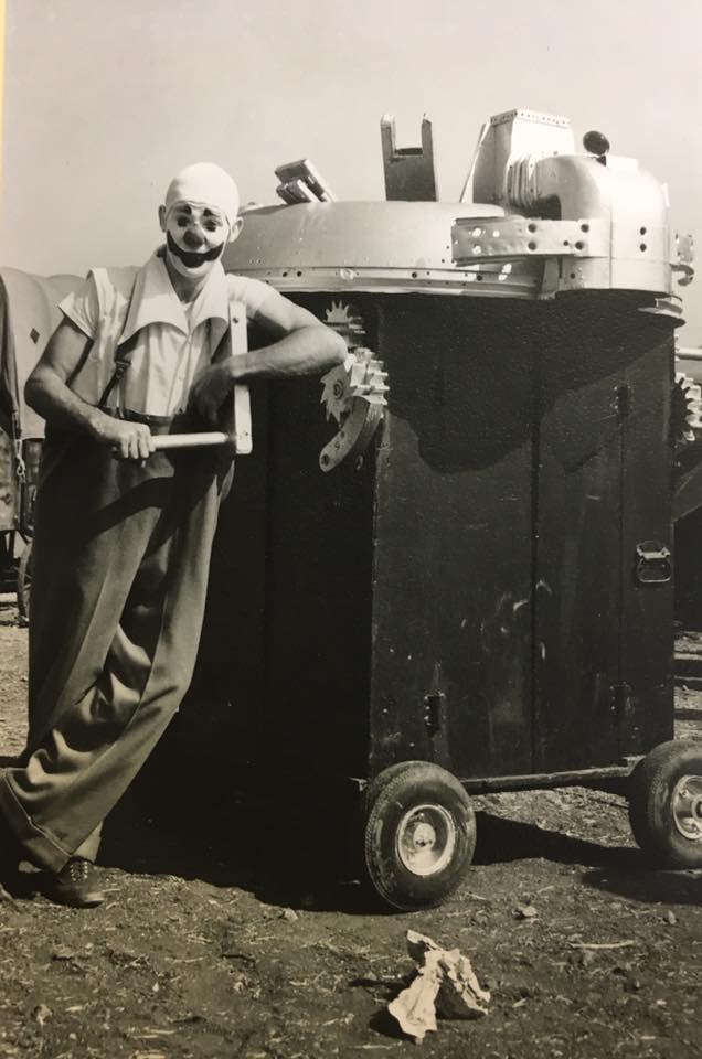 The first clown is a padded up Walter Guice. The knock off head is worn by Alvin Swartz, then Jung, Prince Paul & Gebe Lewis. – courtesy of the International Clown Hall of Fame