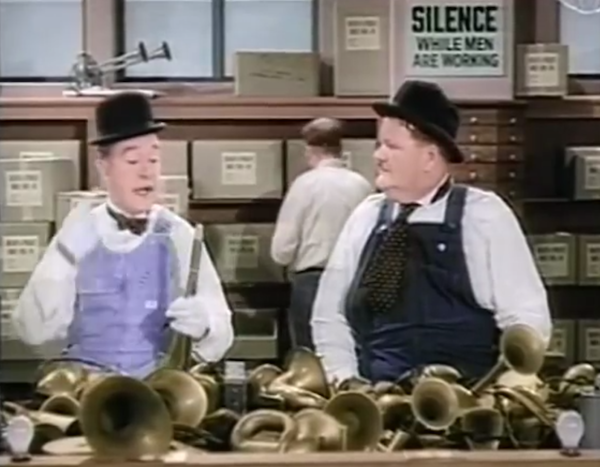 Stan Laurel holds Academy Awards Oscar presented to him for his creative pioneering in the field of cinema comedy on July 11, 1961. (AP Photo/Don Brinn)