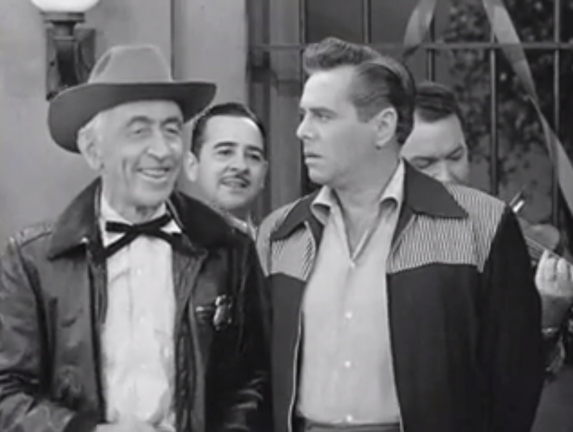 Getting lost on their road trip to Hollywood, Ricky, Lucy, Fred and Ethel get lost in Bent Fork, Tennessee. This is the home town of Lucy’s ‘cousin’ Ernie, played delightfully by Tennessee Ernie Ford. Unfortunately, they are soon arrested for speeding by the local sheriff, who according to Cousin Ernie is “as popular as a skunk at a picnic.”
