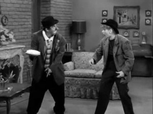 Since she’s a failure at ballet, Lucy hires a professional clown to teach her a burlesque routine. In this case, it’s the Slowly I Turned routine made famous by the Three Stooges. In the routine, a tramp clown assaults anyone who says a key word or phrase that reminds him of the ruin of his happy home. For the Three Stooges, it was “Niagara Falls,” for Abbott and Costello is was “Poko Moko” and for this routine with Lucy it was “Martha” – the name of the tramp’s wife. As always, the ‘Slowly I Turned’ routine is hilarious, resulting in Lucy being hit with a pillow, sprayed by a seltzer bottle, and finally hit in the face with a pie! Only to have Ethel phone and say that Ricky has already booked the burlesque act!
