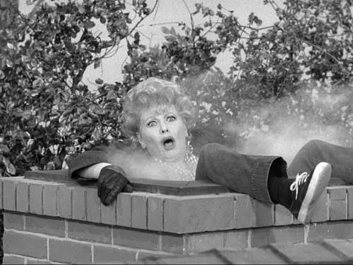 Lucille Ball and Vivian Vance fixing their TV antenna in The Lucy Show